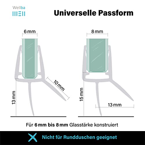 ✔ Compatibilità universale: questa guarnizione è adatta per porte in vetro con uno spessore di 6 mm, 7 mm e 8 mm. È possibile accorciare la guarnizione alla lunghezza appropriata della porta, ad esempio con un taglierino o una sega Puk. Non adatto per docce rotonde. La guarnizione per doccia è ideale come pezzo di ricambio per il vostro box doccia attuale, labbro in gomma, labbro di guarnizione, profilo impermeabile o protezione da schizzi.