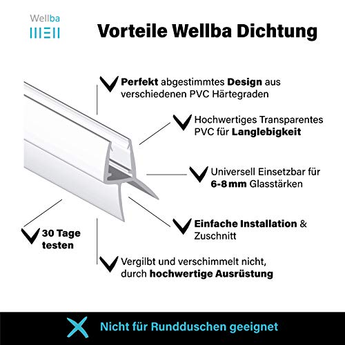 ✔ 30 giorni: noi di Wellba come produttore tedesco siamo convinti delle nostre guarnizioni. Testare la guarnizione per doccia per 30 giorni. Se non siete soddisfatti, potete semplicemente restituire la guarnizione.
