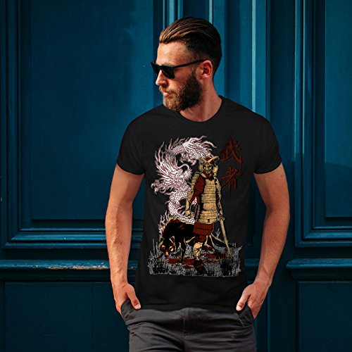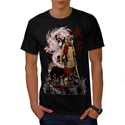 Wellcoda Giappone Drago Lupo Uomini Maglietta Katana T-Shirt con Stampa Grafica