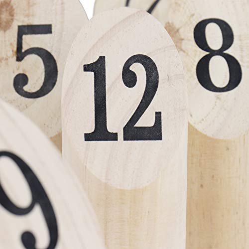 Wellgro - Gioco di lancio finlandese, 14 pezzi, per 2-8 giocatori, in legno massiccio, gioco vichingo con istruzioni di gioco e sacchetto in rete, coni vichinghi, numero cubb