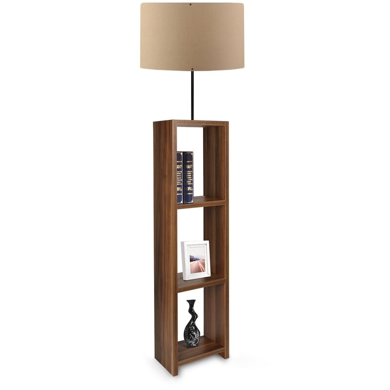 Lampada da pavimento Marrone chiaro Pvc al 100% Struttura MDF Misura di visualizzazione: 21 x 38 cm Altezza del corpo: 90 cm Scaffale: 20 x 26,5 cm Altezza totale: 150 cm Tipo di thread: E27 max 60 W