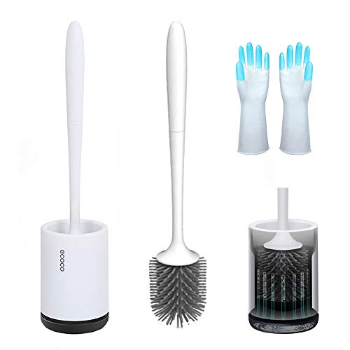 Wellkana - Scopino WC in silicone con setole morbide in silicone e supporto ad asciugatura rapida, kit spazzola per la pulizia del WC con guanto di gomma incluso.