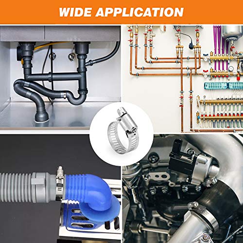 [QUALITÀ SUPERIORE] Realizzato in materiale di alta qualità 100% acciaio inossidabile, resistenza alla corrosione e antiruggine in ambiente umido, che può essere conservato a lungo, ad alta resistenza, non deformato. Resistente a sale, ruggine, corrosione, acqua e olio. La fascetta stringitubo è robusta, robusta e affidabile. Non devi più preoccuparti di ruggine e crepe durante l'installazione sui tubi.