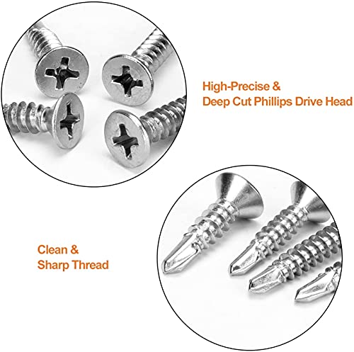 WELLOCKS 205 pezzi viti autofilettanti con M4.2 M4.5 M4.8 testa piatta viti in acciaio inox lunghezza 13-32mm kit viti autoperforanti con scatola (D134)
