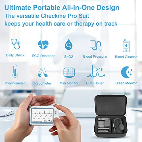 Wellue Checkme Pro Suit Monitor ECG Portatile, Monitor Multiparametrico con APP Bluetooth e Report PC, e Monitor della Pressione Sanguigna, della Glicemia, Monitor SpO2, per Uso Domestico