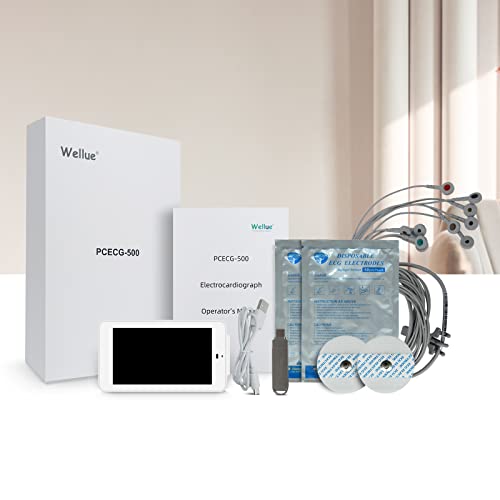 Wellue Monitor ECG Portatile a 12 Derivazioni, Algoritmo di Glasgow Analizza i Dati ECG Automatici, Supporta il Trasferimento Dati WIFI/USB e la Stampa dei Rapporti, Monitor Digitale ECG Professionale