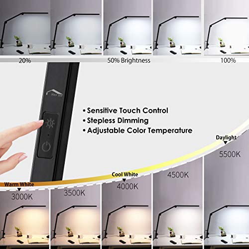 Wellwerks - Lampada da scrivania a LED, 9 W, con braccio oscillante e luce regolabile con 6 modalità di colore + timer + memoria per lettura lavoro o ufficio Nero