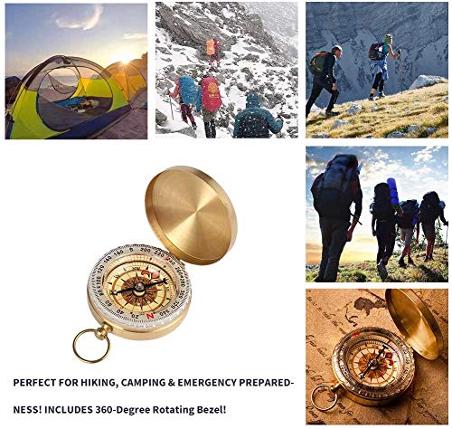 WELLXUNK Bussola per Campeggio,Bussola in Ottone,Bussola Portatile,Strumenti di Navigazione Bussola,per l'escursione di Campeggio all'aperto
