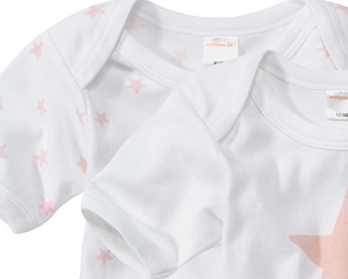 Wellyou, body per bambini a maniche corte con stelle, per ragazzi e ragazze, 100% cotone bianco 116/122 cm