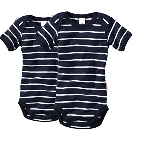 WELLYOU Neonato e Bambini Kurzarmbody/Tutina Ragazzo della Ragazza 100% Cotone, Corpo a Mezze Maniche in Blu Navy Bianco 2er Set (80-86)