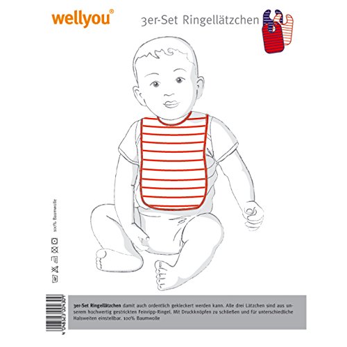 Wellyou Ringel bavaglini 3 confezione - Bavaglino con bottone automatico - Set da 3 | Cotone 100% | Classico a righe in blu marino e bianco, rosso bianco 23,5 x 23.5 cm