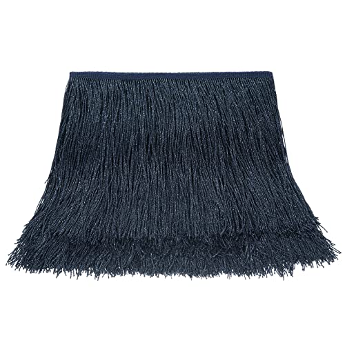 WELROG 5 Yards Lunghezza 20cm/7.87in Larghezza Frangia di Seta Frange Tassel Trim para el vestido de costura Crafts Costumes Latin Dresses DIY Decoración (blu navy)