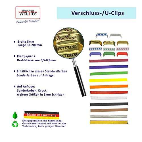 Prodotto ecologico: le clip sono realizzate in Germania con rinuncia alla plastica. Sono realizzati in carta kiraft stampata con due fili di acciaio