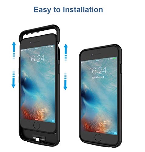 WELUV - Custodia per batteria F.iPhone 6, 6S, 7, 8 SE, 2020, 4000 mAh, con supporto, batteria ultra sottile, colore: Nero