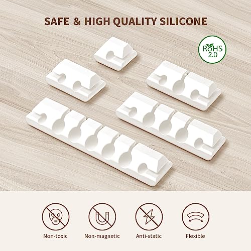 USI MULTIPLI - I clip per cavi possono aderire a qualsiasi superficie liscia e pulita a casa, in auto o in ufficio, come tavoli, scrivanie e pareti in vetro, plastica, metallo o legno. Inoltre, organizer cavi essere utilizzati come portapenne, spazzolini da denti o filo interdentale. Suggerimenti: mantenere il organizer cavi per almeno alcune ore dopo il fissaggio, meglio se 24 ore.