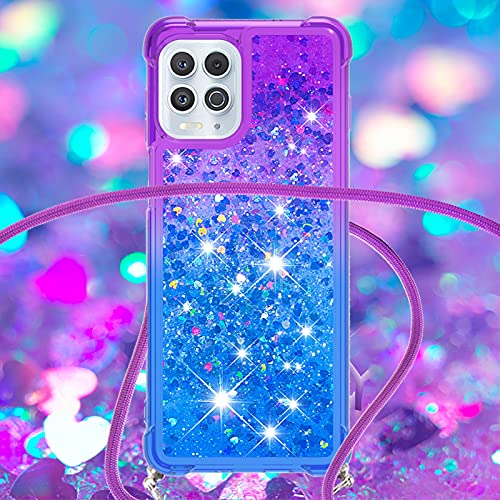 WenBaby Cover con Cordino per Moto Edge S/Moto G100,Custodia a Tracolla Morbido Silicone Necklace Regolabile Staccabile Shock Absorption Antiscivolo Protettiva Case in Viola/Blu