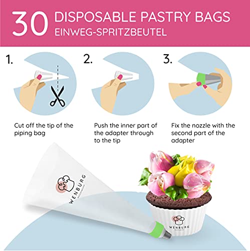 GRANDI ACCESSORI PER LA COTTURA: Il set di beccucci contiene molti accessori, quindi puoi realizzare una torta deliziosa e dall'aspetto magico o un ripieno di crema e dotato di cupcake con decorazione floreale riuscire