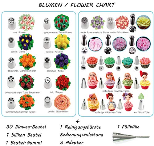 MIX PERFETTO DI BOCCHETTE: Gli ugelli per pasticceria sono accuratamente selezionati, in modo da poter evocare qualsiasi tipo di decorazione per dolci - tulipani, rose, orchidee, stelle, volant, scritte, foglie. Per torte straordinarie, cake pop, muffin, cioccolatini