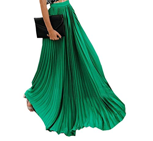 Wenchuang Gonna Lunga da Donna Vita Alta Boemia Stile Plissettata Gonna Maxi Verde XL