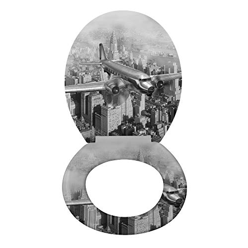 Wenko 22410100 - Sedile WC "Vecchio aereo, in Duroplast, Grigio, 38.5 x 45.5 x 10 cm