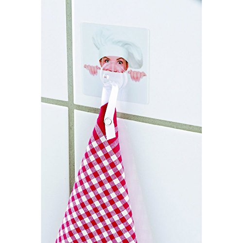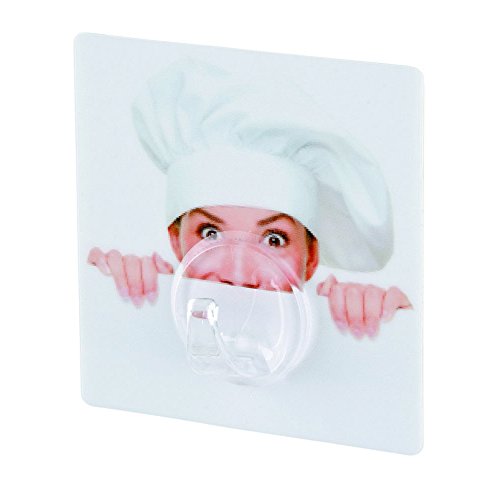 Wenko 4369600100 Static-Loc Gancio alla Parete Uno Chef - Fissaggio Senza Trapano, Polietilene tereftalato, Multicolor