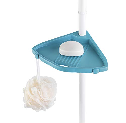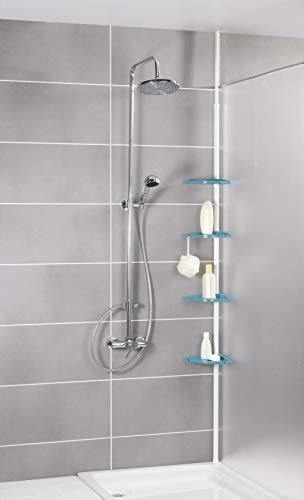 WENKO Angoliera telescopica per la doccia Compact azzurro - 4 ripiani, 4 ganci, alluminio, plastica, Alluminio, 26 x 78-275 x 19.5 cm, Bianco