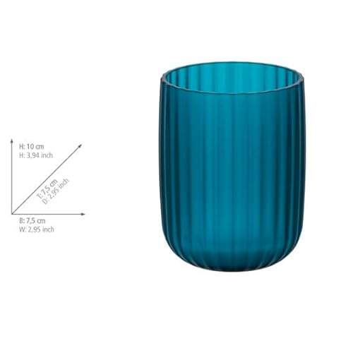 Design originale: solo il meglio per la vostra oasi di benessere - l'elegante bicchiere portaspazzolini, dalla forma scultorea e dalla superficie smerigliata di colore petrolio, aggiunge un tocco attraente alla vostra stanza da bagno e alla toilette per gli ospiti