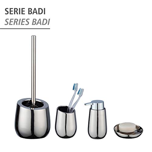 WENKO Bicchiere portaspazzolini Badi cromo ceramica - Portaspazzolino per spazzolini e dentifricio, Ceramica, 8 x 11 x 8 cm, Cromo