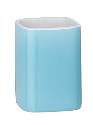 WENKO Bicchiere portaspazzolini Elmo blu ceramica - Portaspazzolino per spazzolini e dentifricio, Ceramica, 6.5 x 9 x 6.5 cm, Blu