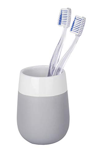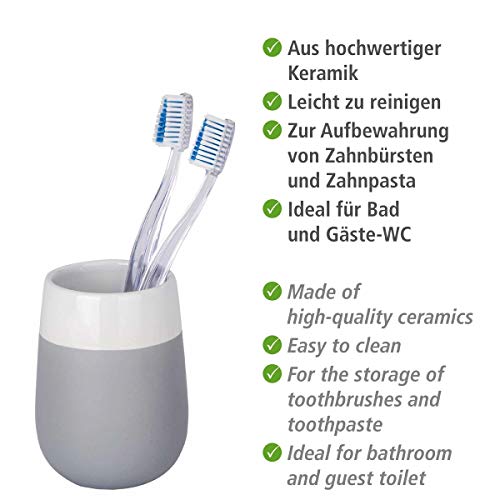 WENKO Bicchiere portaspazzolini Malta bianco grigio/bianco ceramica, Ceramica, 8 x 11 x 8 cm, Grigio