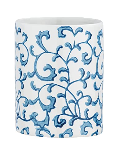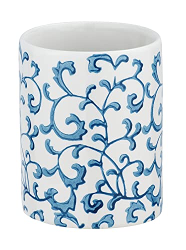 Design incantevole: solo il meglio per la vostra oasi di benessere - il bicchiere portaspazzolini bianco con decorazioni floreali di colore blu, conferisce un tocco affascinante alla vostra stanza da bagno ed alla toilette per gli ospiti