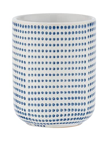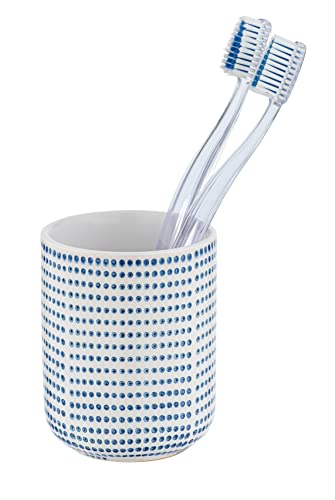 WENKO Bicchiere portaspazzolini Nole, pregiato portaspazzolini per spazzolini e dentifricio, in raffinata ceramica di colore bianco con superficie a pois blu, dipinto a mano, Ø 7,5 x 9,5 cm