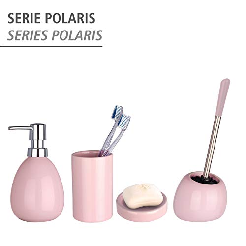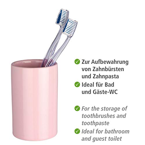 WENKO Bicchiere portaspazzolini Polaris rosa pastello ceramica, Ceramica, 7 x 11 x 7 cm, Rosa