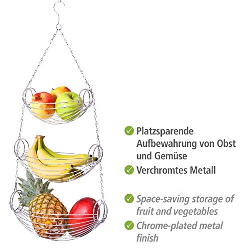WENKO Cesti Triago da appendere - 3 Etagen, Metallo cromato, 33 x 73 x 20.5 cm, Argento lucido
