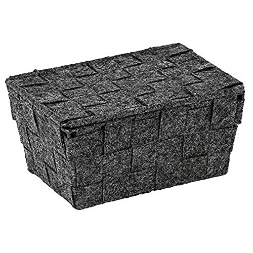 WENKO Cestino da bagno con coperchio Adria Feltro Mini lungo antracite - Cestino da bagno, cestino per la cucina, Poliestere, 19 x 9.5 x 14 cm, Grigio antracite