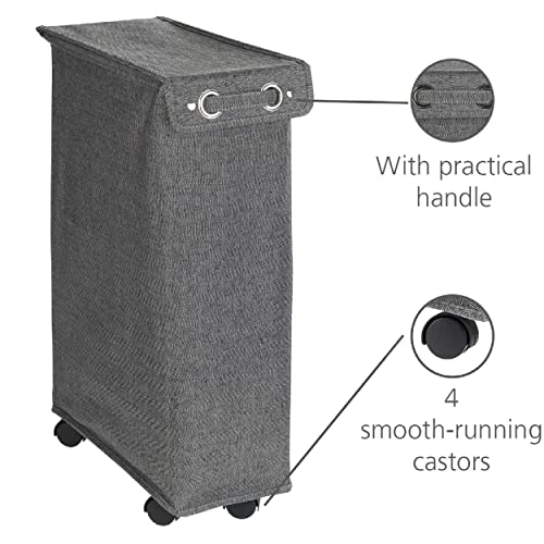 WENKO Cesto smistabiancheria Corno Prime con coperchio grigio melange, solido portabiancheria con staffe di rinforzo e 4 rotelle scorrevoli, 43 l, uno scomparto (LxAxP): 18,5 x 60 x 40cm