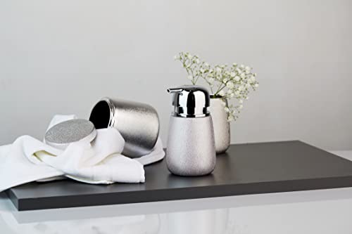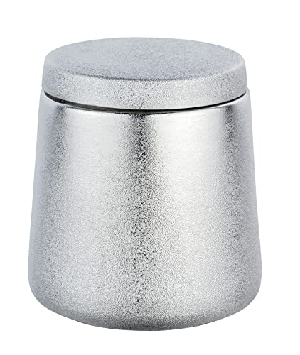 WENKO Contenitore appoggio Glimma argento ceramica - Barattolo porta cosmetici, barattolo porta cotone, Ceramica, 10 x 11.5 x 10 cm, Argento