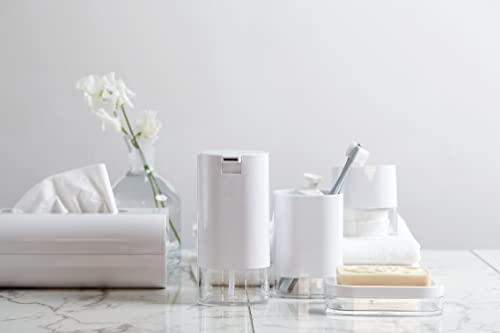 WENKO Contenitore appoggio Oria bianco - Barattolo porta cosmetici, barattolo porta cotone, Acrilico, 7.5 x 8.5 x 7.5 cm, Trasparente