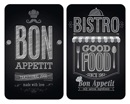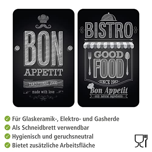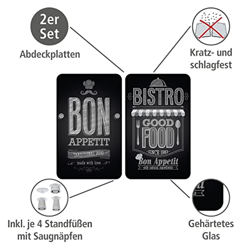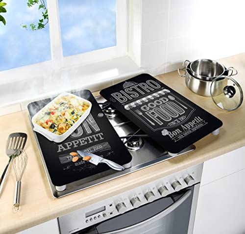 WENKO Coprifornelli in vetro Universale Bon Appetit set 2 pezzi - per tutti i tipi di piani di cottura, Vetro temperato, 30 x 1.8-5.5 x 52 cm, Multicolore