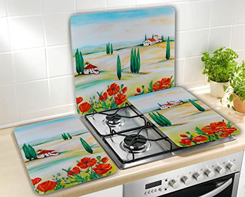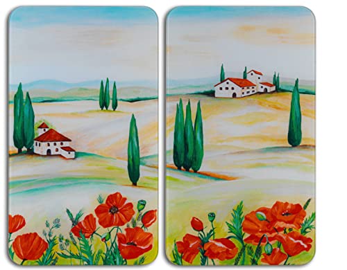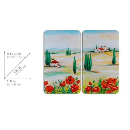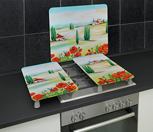 Wenko Coprifuochi Vetro Universale Toscana - Set 2 Pezzi, per Tutti i Tipi di Piani di Cottura, Vetro Temperato, 30 x 1.8-5.5 x 52 cm, Multicolore
