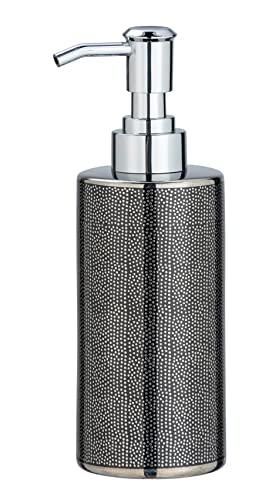 WENKO Distributore di sapone Argento/Anthrazit - Dispenser sapone liquido, dispenser detersivo piatti Capacità: 0.3 l, Ceramica, 7.5 x 18.5 x 6.5 cm, Grigio antracite