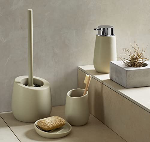 WENKO Distributore di sapone Badi beige ceramica - Dispenser sapone liquido, dispenser detersivo piatti Capacità: 0.32 l, Ceramica, 9.5 x 16 x 8 cm, Beige