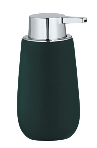 WENKO Dosatore per sapone Badi, dosatore per sapone liquido ricaricabile in ceramica di qualità con superficie opaca, robusto erogatore a pompa in plastica, 320 ml, 9,5 x 16 x 8 cm, verde scuro