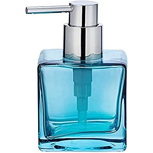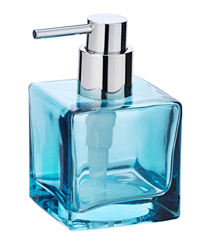 WENKO Dosatore di sapone Lavit blu - Dispenser sapone liquido, dispenser detersivo piatti Capacità: 0.28 l, Vetro, 8 x 8.5 x 8 cm, Blu