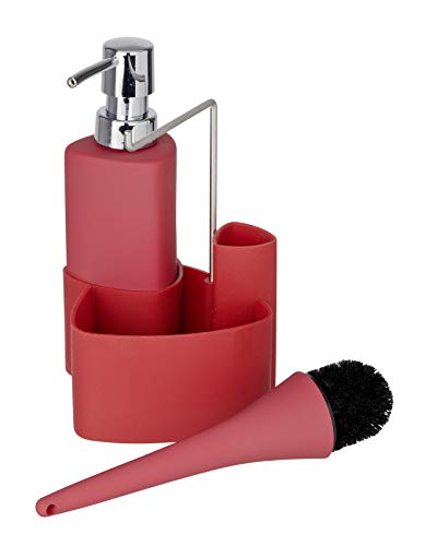 WENKO Set lavare piatti Empire rosso - con spazzola Capacità: 0.25 l, Ceramica in finitura soft touch, 11 x 19 x 12.5 cm, Rosso