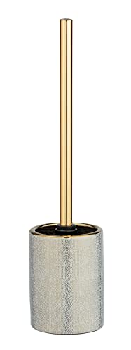 WENKO Set WC Nuria, pregiato portascopino in raffinata ceramica con lussuosa superficie strutturata in oro/bianco, scopino WC igienico in silicone, Ø 9,5 x 39 cm