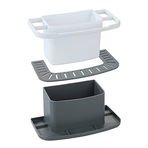 Design pratico: la vaschetta per lavello offre una custodia pratica con tanto spazio per detersivo piatti, panno lavapiatti, spugna e simili, di colore bianco/grigio in robusto PP
