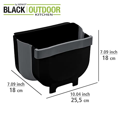 WENKO Pattumiera da Porta Fago 5 L Nera Pieghevole per rifiuti da Cucina, Polipropilene plastica (TPR), Nero, 25,5 x 18 x 18 cm