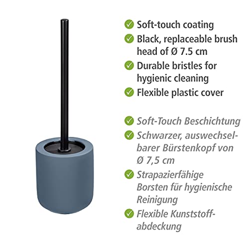 WENKO Piantana set WC Avellino, moderno portascopino WC in pregiata ceramica, superficie soft touch, Ø 11,5 x 40 cm, incluso scopino WC, ciuffo sostituibile Ø 7,5 cm, opacizzato, colore grigio-azzurro