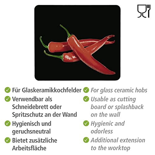 WENKO Piastra in vetro ceramicato a tema Peperoncino - per piano di cottura in vetroceramica, tagliere, Vetro temperato, 56 x 50 x 0.5 cm, Multicolore